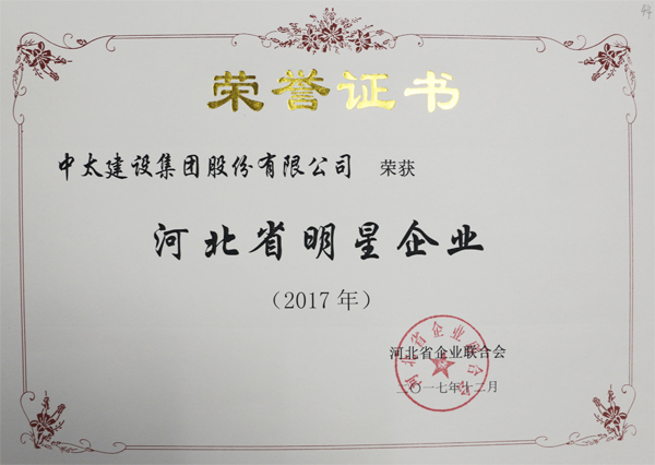 近日,河北省企業聯合會第六屆會員代表大會第二次會議暨2018年河北省企業管理創新大會在石家莊召開,會議通報《河北省第十屆“最具影響力”“最具成長性”“最受關注企業家”評審結果》。中太建設集團獲評五星級“最具影響力和最具成長性企業”(“雙最”企業)、“河北省明星企業”,李文健同志被授予“最受關注企業家”、“河北省優秀企業家”稱號。