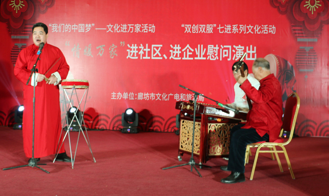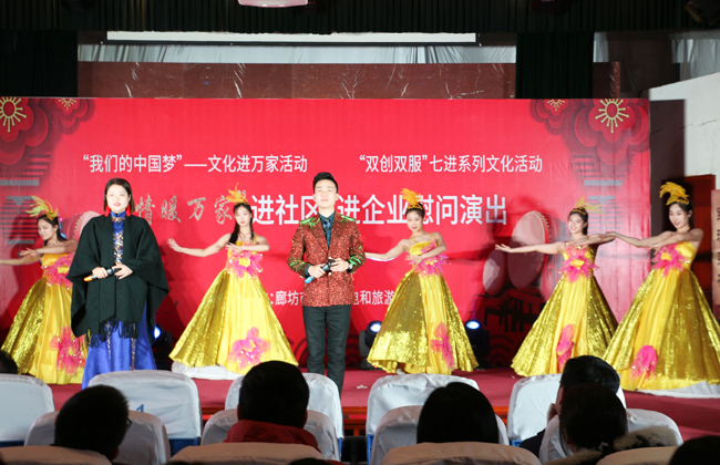 2019年2月19日上午,廊坊市伴著瑞雪迎春的兆頭和上元節張燈結彩的情景。中太大廈二樓多功能廳燈光璀璨,歡聲笑語,廊坊市文化廣電和旅游局組織的“我們的中國夢”文化進萬家系列活動在此舉辦,這也是這支文藝小分隊進企業、進社區開展“情暖萬家”慰問演出的第十場演出。市文廣旅局副局長李永生、中太投資控股集團監事會主席吉士俊出席活動并分別致辭,中太系統在廊各板塊的部分員工觀看了慰問演出。