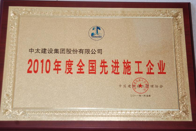 集團公司榮獲“2010年度全國先進施工企業”榮譽